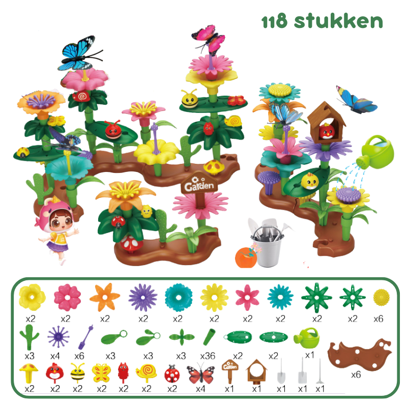 Leuk Educatief Speelgoed: Zie hoe de creativiteit van je kind opbloeit met onze Bloementuin bouwset! Speciaal ontworpen voor kinderen van 3 tot 8 jaar, helpt dit plezierige speelgoed hen om kleuren en vormen te herkennen, stimuleert het de verbeelding en verbetert het probleemoplossend vermogen - allemaal tijdens het spelen en genieten.